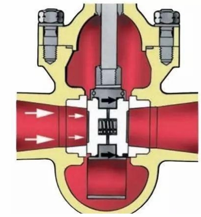 閥門打開平板閘閥閥門關閉:流體壓力 (箭頭指示)使出口側的閥瓣與閥座接觸。