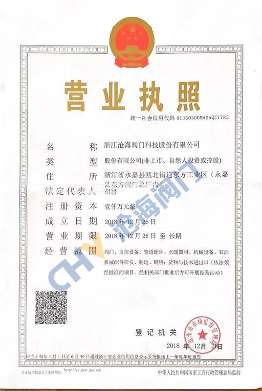 浙江滄海閥門營業執照